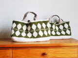 カーキと生成りのコットン糸で編んだ横長のオーバルトートです。