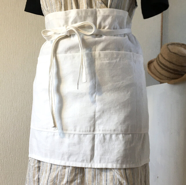「肩ヒモを細くしたバッククロス・エプロン」「キャミソールワンピース ナチュラルホワイト コットンリネン」と同じ布地、ナチュラルホワイト コットンリネン。