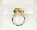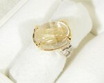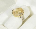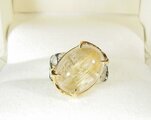 ボリュームのある大粒のルチルクォーツを留めた指輪です。透明感も高く、金の針もたくさん入った高品質のルチルクォーツです。