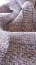 ヨコ糸はシルクリネンとグレー、パープル、ネイビーなどのストライプです。
