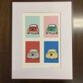 4枚のイラストを一組にして、フレームに額装してお届けします。