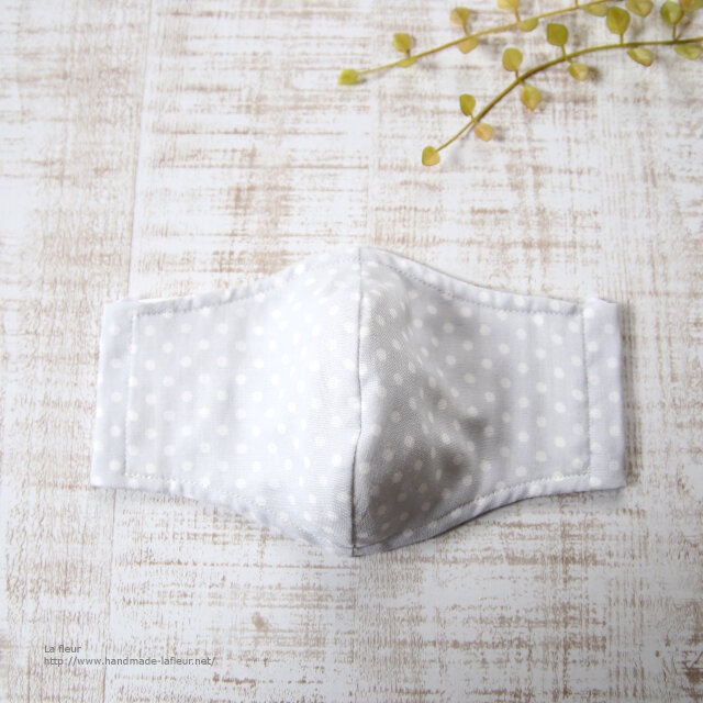 大きめ・大人用4重立体マスク*フィルターシート用ポケット付き 夏用 薄グレードット×白