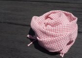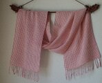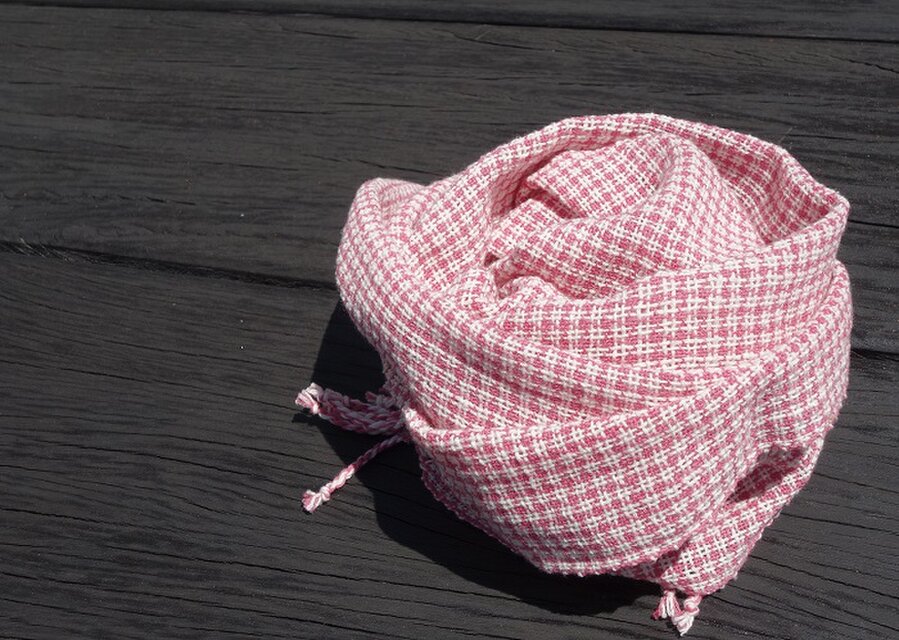 天然染料で染めたローズピンクと生成りで千鳥格子に織りました。
