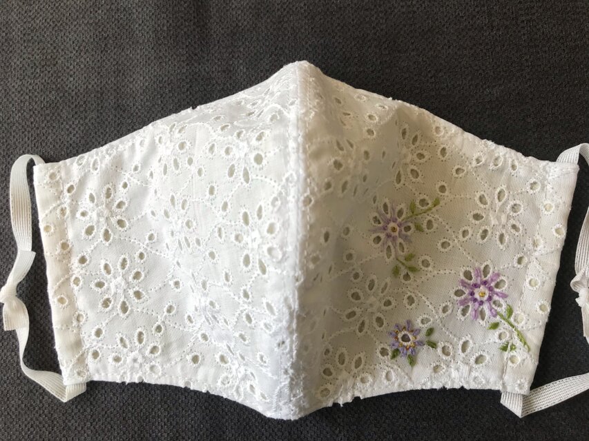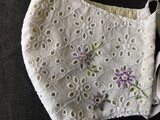 コットン100%の白レース生地に、ワンポイントの花の刺繍が入っています。
