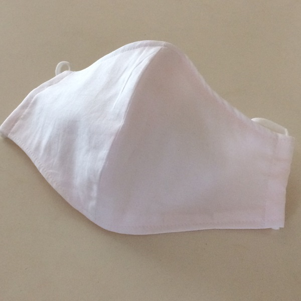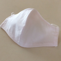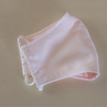 表側には木綿素材(白シーチング)、肌にあたる内側部分にはシルク素材(ピンク)を用いた立体マスクです。間に晒を挟んで仕立てました。