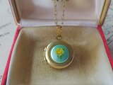 ヴィンテージ ミントGreen/Yellow薔薇 ロケットネックレス