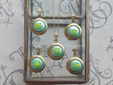 1960年代Japanヴィンテージ、約8㎜のミントGreen・Yellow薔薇のGlasssカボションを用いてお作りしましたロケットネックレスです。