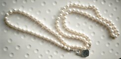 艶やかな大玉パール(8mm玉)を1粒ずつシルク糸で結びながら作ったロングネックレスです。