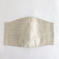 リネンとオーガニックコットンを組合せた暑苦しくなりにくい夏マスクです。別売りのダブルガーゼのマスクに比べると薄手です。口元が苦しくなりにくい立体デザインです。写真4枚目、子供~女性用の市販マスクとの比較です。縫い目は出来るだけ小さく、肌に当たらなり様に仕上げています。