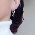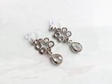 涼しげなクリアカラーガラスとロジウムカラーのキュートな幾何学模様のメタルを合わせたプチサイズのイヤリングです。