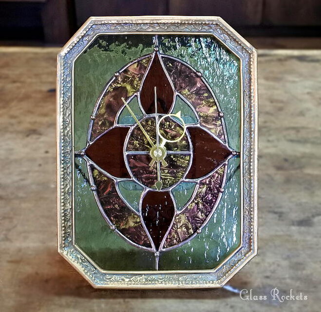 ・”ゴージャス”でアンティークなステンドグラスの時計を作ってみました。