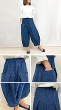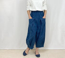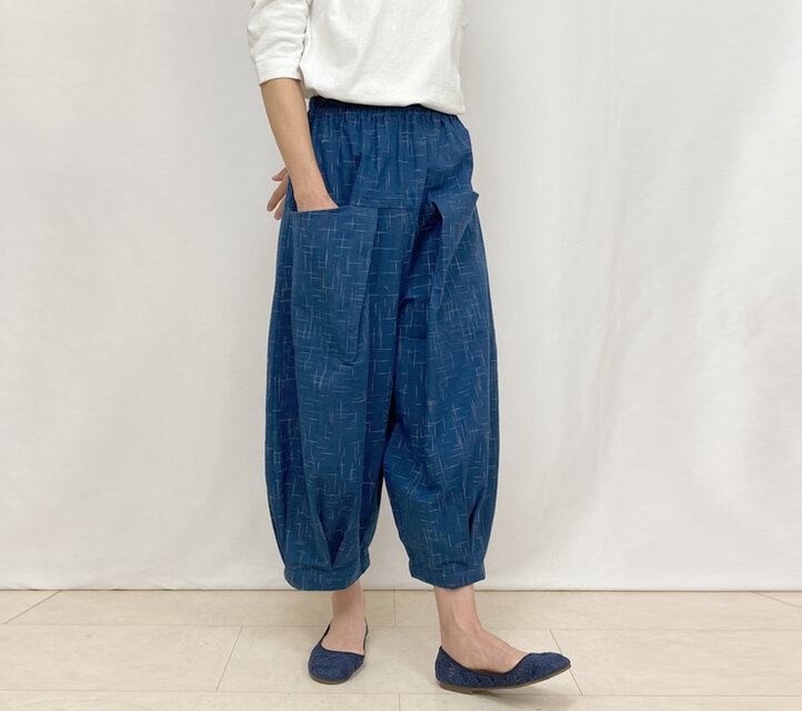 86㎝丈、インディゴブルーが美しいジョムトン手織り十字綿絣ロングパンツ