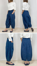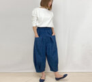 モンペパンツは裾上にふくらみがあるので足首がさらにほっそり見える効果があり、着痩せ効果も期待できます。