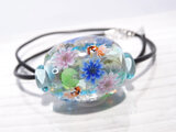 睡蓮と金魚は表面に描いたのではなく、ひとつずつガラスでパーツを作り、溶かしたガラスに埋め込みながら制作しております。