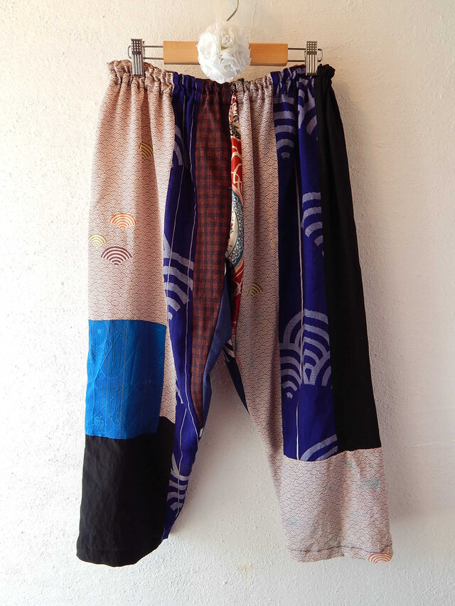 ゆったりフリーサイズで股下にマチを入れておりますので動きやすいデザインです。