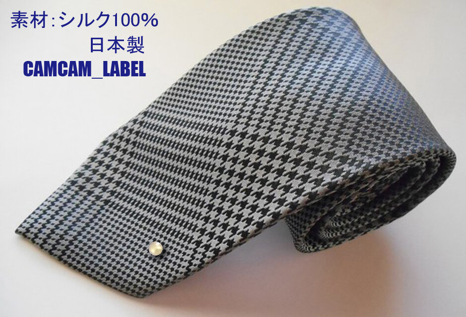 スワロフスキー使いネクタイ グレンチェック(グレー)シルク100%