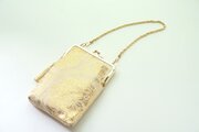 ミニバッグ、スマホポーチとしてお使い頂けるゴールドのシルク帯を使ったがま口ミニバッグです。