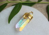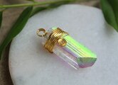 虹色の輝きが非常に美しいAA級の、エンジェルオーラダンビュライトのタンブルをゴールドのワイヤーで巻きました。