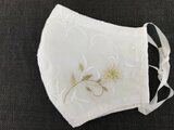 ホワイトのコットンローン100%の生地に、ワンポイントの花の刺繍が入っています。