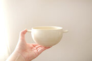 持ち手用の耳が付いた、ころんとした可愛らしいフォルムのボウルです。