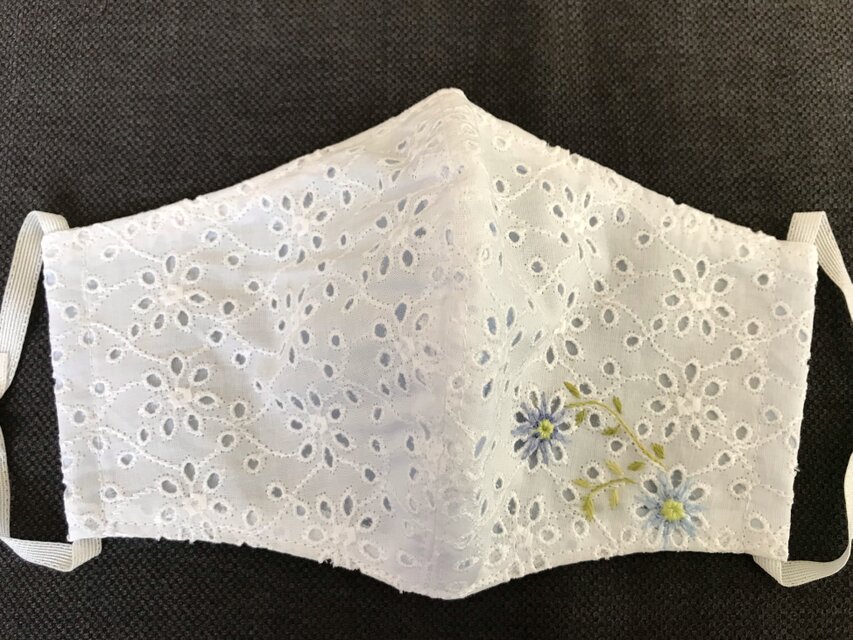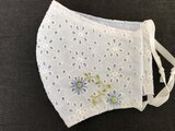 コットン100%の白レース生地に、ワンポイントの花の刺繍が入っています。