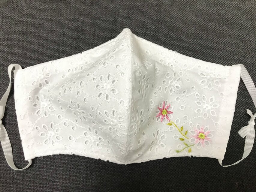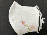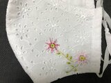 コットン100%の白レース生地に、ワンポイントの花の刺繍(左右)が入っています。