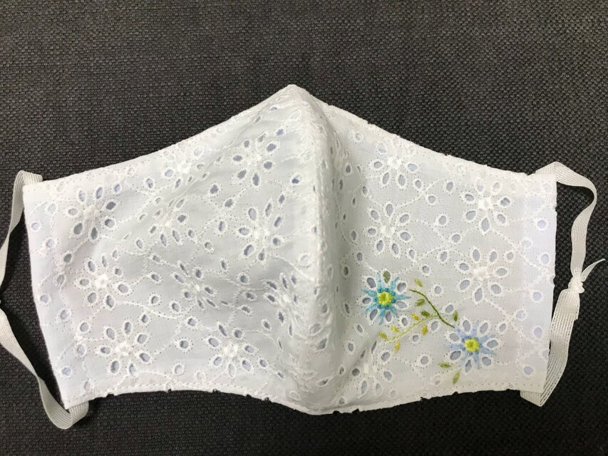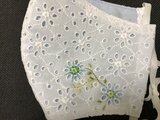 コットン100%の白レース生地に、ワンポイントの花の刺繍(左右)が入っています。