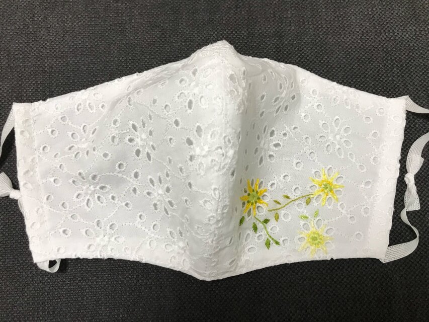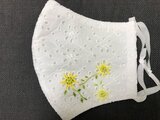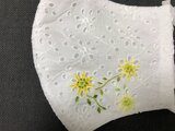 コットン100%の白レース生地に、ワンポイントの花の刺繍(左右)が入っています。