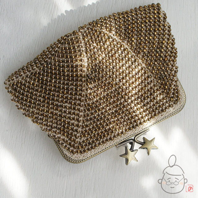 ばあば作★ガラスビーズの大きめスクエアがま口 (étoile・1190)