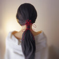 ※先にゴム部で髪をまとめ、垂れている紐部分をその上から巻きつけて使用します。画像を添付していますのでそちらを参照ください。この点についてお問い合わせ頂いてもお答えできません※