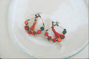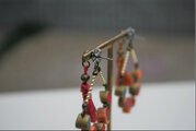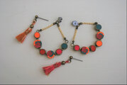 キャッチ部分に飾りがついています。前部分のタッセルも左右違う色にしてあり、楽しいピアスになっています。
