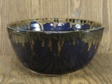 陶器製のメダカ鉢 兼 睡蓮鉢です.ルリ釉に黒い釉薬でふちどりしました.黒の濃いところは金色っぽく結晶しています.