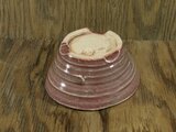 本来薄い緑色の釉薬が不完全燃焼で薄あずき色に発色して,ボコボコの表面と相まってなんとも言えぬ味わいに仕上がっています.スーパーの惣菜でも一味グレードアップするんじゃないかと思います.高名な作家さんなら数万円・・かしら.
