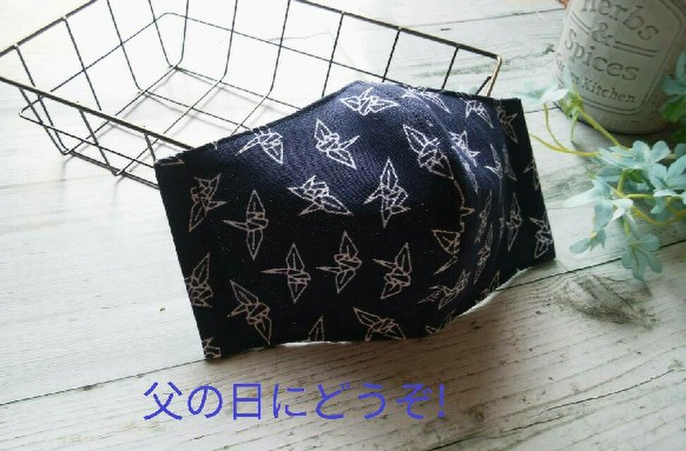表地に折り鶴柄のさらし、裏地にCOOLMAX使用の立体マスクです。