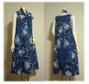 明るめのブルー地に紫陽花柄の浴衣からリメイクしたワンピースです。