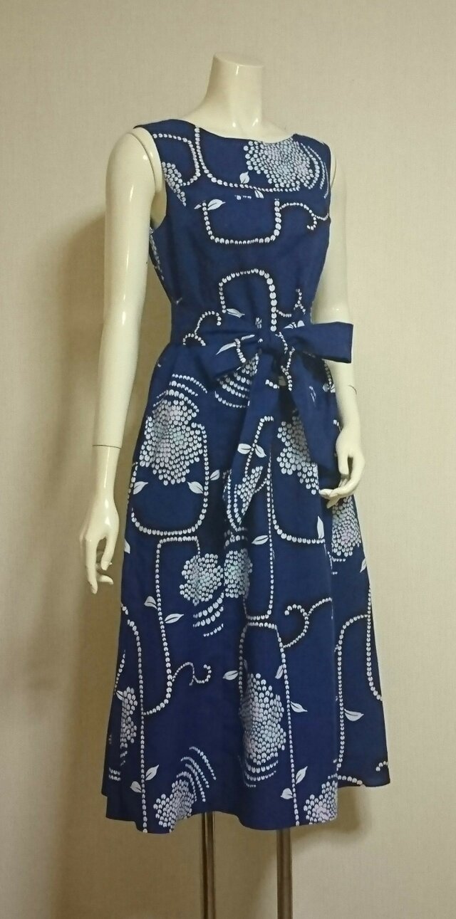 166*明るいブルーの紫陽花柄浴衣からAラインワンピース