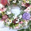 グリーン系のアジサイを合わせた可愛らしいリースです。