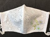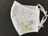 コットン100%の白レース生地に、ワンポイントの花の刺繍(左右)が入っています。