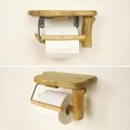 【温泉流木】なめらか明るい色の棚台と支え流木がかっこいい押さえ付きトイレットペーパーホルダー R090048