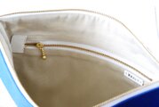 前と後ろで異なるデザインを使って、二面楽しめるクラッチバッグです。