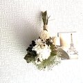 今が季節のホワイトの紫陽花のプリザーブドフラワーを一緒に束ねたスワッグです。