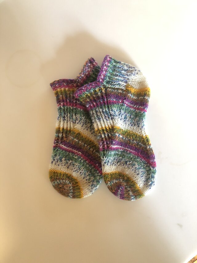 ドイツのOpal糸で一針一針、丁寧に編みました。