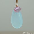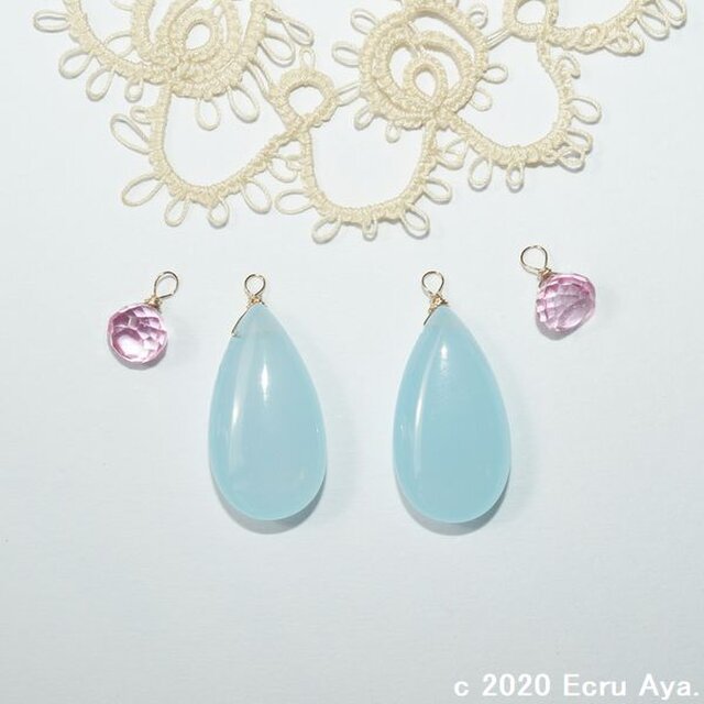 素材:ライトブルージェードAAA ペアシェイプ、宝石質ピンクトパーズAAA オニオンブリオレットカット、その他全て14kgf