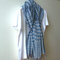 手織り・藍染め リネン大判ストール 紺×あさぎ