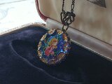 ヴィンテージ Blue薔薇(23㎜)/Mirror・GoldーEdge ネックレス