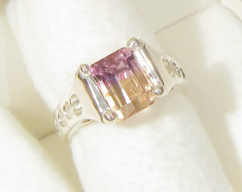 輝きと色合いの綺麗なアメトリンをオリジナルの枠に留めた指輪です。