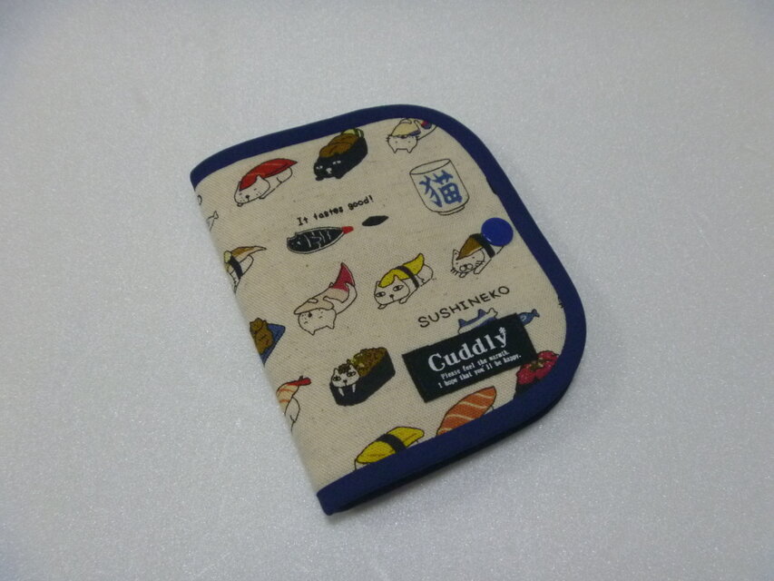 お寿司猫柄の生地を使って仮置きマスクケースを作成しました。