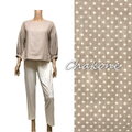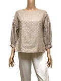 【ブラウス】ふんわりパフスリーブ・ラウンドネック・ブラウスシャツ(ちょうちん七分袖/ML) 水玉ベージュ