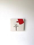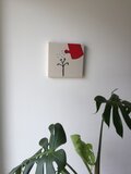 生成りの帆布の生地に小さな木を育てる絵を表現しました。