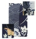 紺地に白の波柄の浴衣と、大きな桔梗柄の浴衣地を